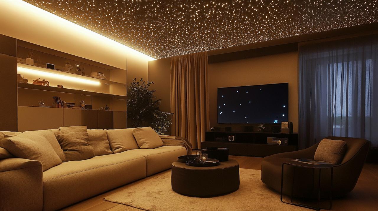 La personalización es otro de los grandes atractivos de estos sistemas. Gracias a la tecnología LED RGBW y a la compatibilidad con sistemas domóticos como Casambi, KNX o DALI, es posible programar escenas lumínicas específicas para diferentes momentos del día o actividades. Por ejemplo, se pueden crear efectos titilantes suaves para favorecer el sueño en un dormitorio, sincronizar el movimiento de las estrellas con música ambiente en un spa o establecer cambios graduales de color para acompañar proyecciones audiovisuales en salas de cine privadas. Esta capacidad de adaptación convierte al techo estrellado en un elemento vivo y dinámico, que evoluciona según las necesidades y preferencias de sus usuarios.